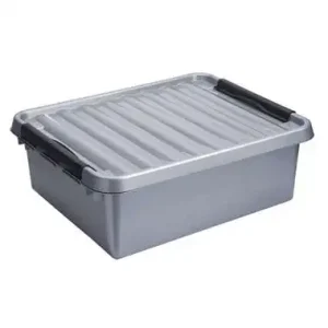 Stapelbare Q-line opbergbox 25 liter – grijs/zwart – 18x40x50 cm – Leen Bakker