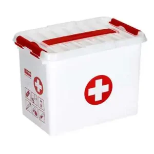 Stapelbare Q-line opbergbox EHBO 9 liter – wit/rood – 22x20x30 cm – Leen Bakker