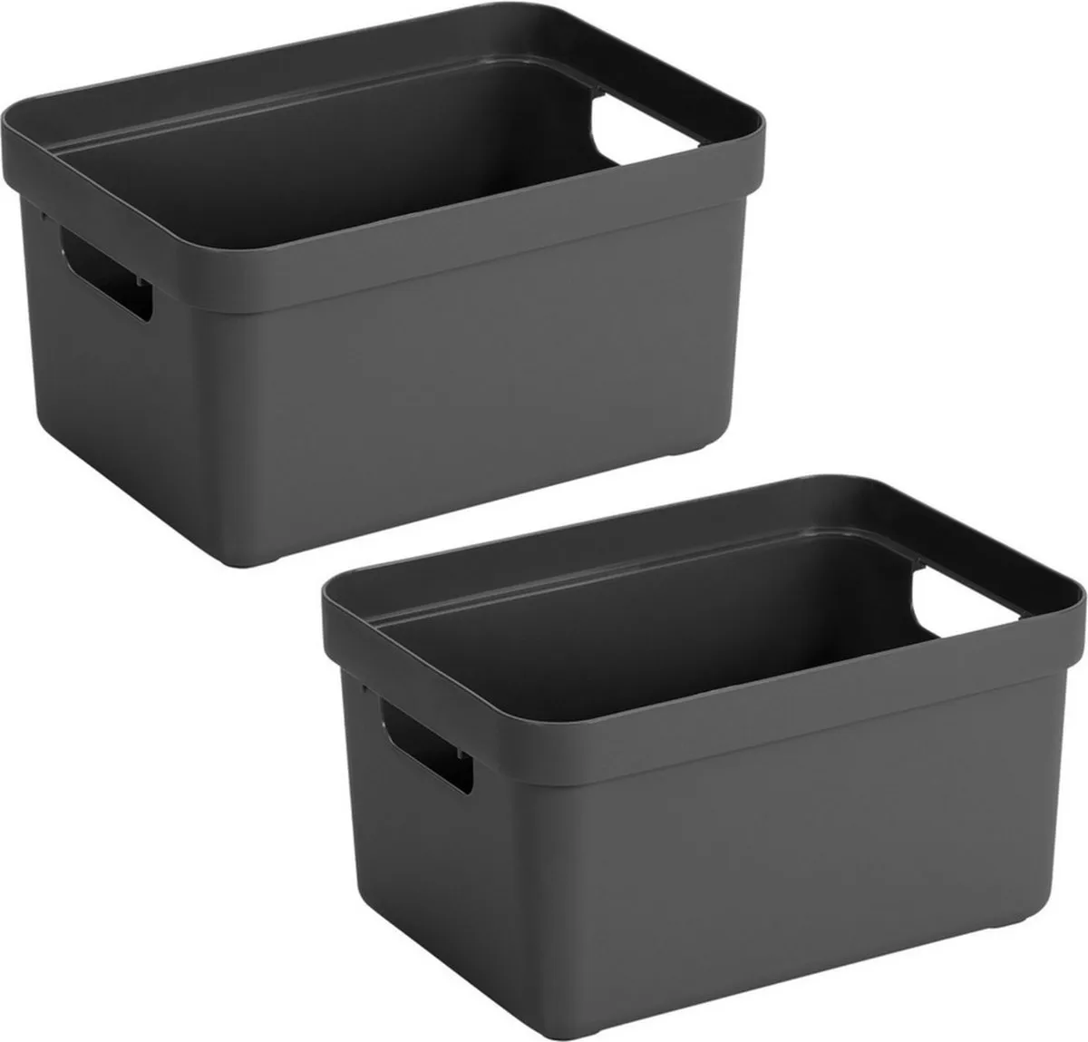 10x stuks antraciet grijze opbergboxen/opbergdozen/opbergmanden 5 liter kunststof. Door het moderne design en de luxe uitstraling van de boxen kun je deze opbergboxen/opbergdozen prima in de woonkamer of slaapkamer plaatsen. Deze box is bijvoorbeeld geschikt voor het opbergen van rondslingerend speelgoed, breiwerkjes of het opbergen van boeken. Ook ideaal voor in de badkamer of in de voorraadkast. De mand heeft handgrepen waardoor je ze gemakkelijk kunt dragen. Formaat: ongeveer 25,2 x 18 x 12,2 cm. Materiaal: kunststof. Aantal boxen: 1x. Deksel: geen. Inhoud: ca. 5 liter. Opbergdozen/opbergboxen/manden voor het opbergen van spullen.