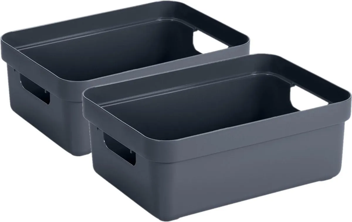 10x stuks donkerblauwe opbergboxen/opbergdozen/opbergmanden 9 liter kunststof. Door het moderne design en de luxe uitstraling van de boxen kun je deze opbergboxen/opbergdozen prima in de woonkamer of slaapkamer plaatsen. Deze box is bijvoorbeeld geschikt voor het opbergen van rondslingerend speelgoed, breiwerkjes of het opbergen van boeken. Ook ideaal voor in de badkamer of in de voorraadkast. De mand heeft handgrepen waardoor je ze gemakkelijk kunt dragen. Formaat: ongeveer 35.2 x 25.3 x 12.2 cm.