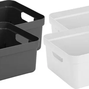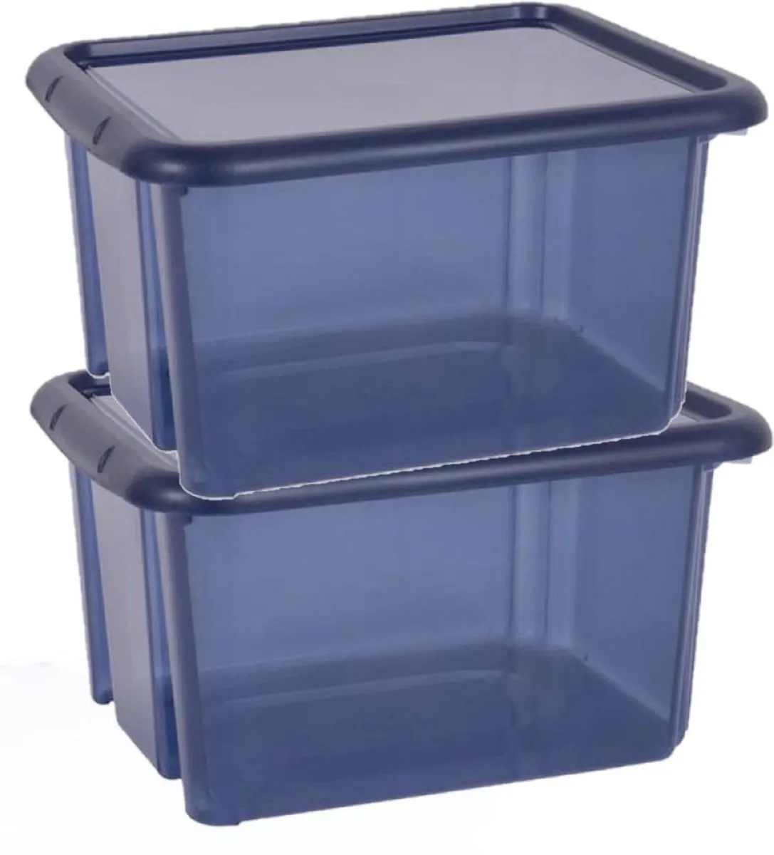 10x stuks kunststof opbergboxen/opbergdozen donkerblauw transparant L44 x B36 x H25 cm stapelbaar – Voorraad/opberg boxen/bakken met deksel