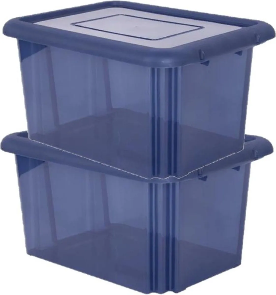 10x stuks kunststof opbergboxen/opbergdozen donkerblauw transparant L58 x B44 x H31 cm stapelbaar – Voorraad/opberg boxen/bakken met deksel