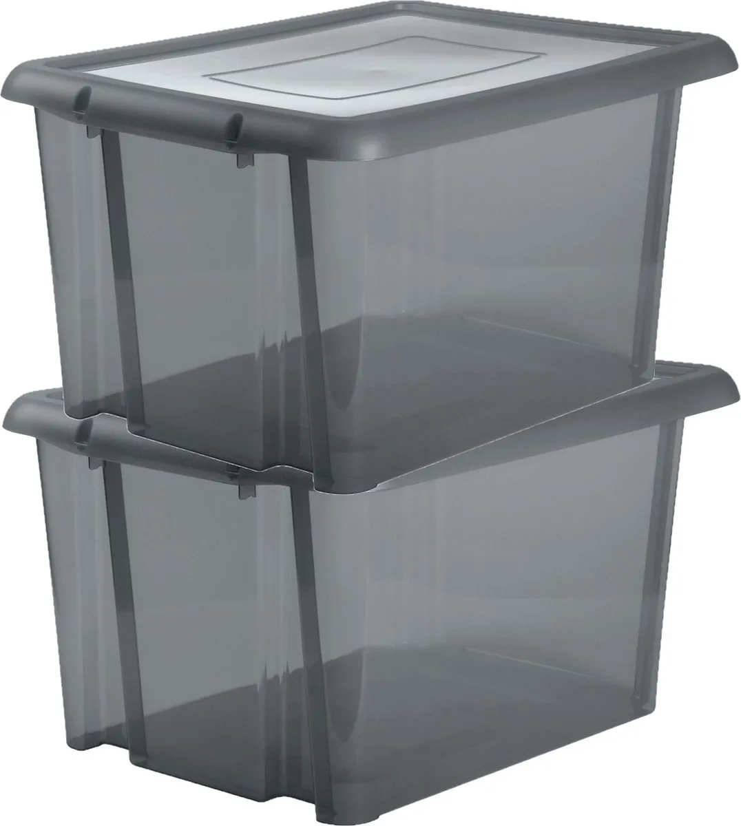 10x stuks kunststof opbergboxen/opbergdozen grijs transparant L65 x B50 x H36 cm stapelbaar – Voorraad/opberg boxen/bakken met deksel