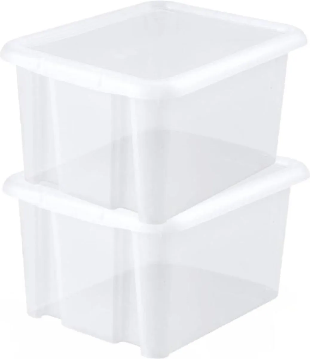 10x stuks opbergboxen/opbergdozen stapelbaar. Multifunctionele opberger voor het vocht- en stofvrij opbergen van een grote variatie spullen. De box is makkelijk te stapelen voor optimaal opberggemak. Ook is hij voorzien van handige en stevige sluitclips zodat het deksel goed op zijn plaats blijft. Inhoud: 30 liter. Afmeting (lxbxh) ca: 44 x 36 x 25 cm. Kleur: transparant wit. Materiaal: kunststof.