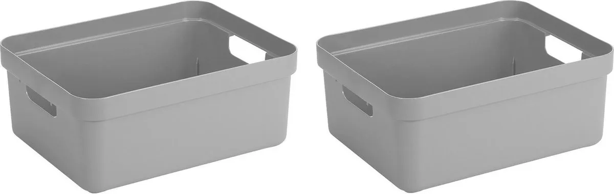 10x stuks lichtgrijze opbergboxen/opbergdozen/opbergmanden 24 liter kunststof. Door het moderne design en de luxe uitstraling van de boxen kun je deze opbergboxen/opbergdozen prima in de woonkamer of slaapkamer plaatsen. Deze box is bijvoorbeeld geschikt voor het opbergen van rondslingerend speelgoed, breiwerkjes of het opbergen van boeken. Ook ideaal voor in de badkamer of in de voorraadkast. De mand heeft handgrepen waardoor je ze gemakkelijk kunt dragen. Formaat: ongeveer 45,3 x 35,4 x 18,3 cm. Materiaal: kunststof. Aantal boxen: 10x. Deksel: geen. Inhoud: ca. 24 liter. Kleur: licht grijs. Opbergdozen/opbergboxen/manden voor het opbergen van spullen.
