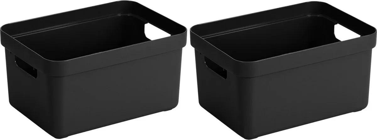 10x stuks zwarte opbergboxen/opbergmanden 5 liter kunststof. Door het moderne design en de luxe uitstraling van de boxen kun je deze opbergboxen/opbergdozen prima in de woonkamer of slaapkamer plaatsen. Deze mand/bak is bijvoorbeeld geschikt voor het opbergen van rondslingerend speelgoed, breiwerkjes of het opbergen van boeken. Ook ideaal voor in de badkamer of in de voorraadkast. De mand heeft handgrepen waardoor je ze gemakkelijk kunt dragen. Formaat: ongeveer 25,2 x 18 x 12,2 cm. Materiaal: kunststof. Aantal boxen: 10x. Deksel: geen. Inhoud: ca. 5 liter. Opbergdozen/opbergboxen/manden voor het opbergen van spullen.