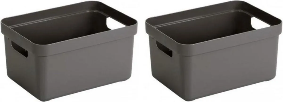 10x Opbergboxen/opbergdozen/opbergmanden 5 liter kunststof. Door het moderne design en de luxe uitstraling van de boxen kun je deze opbergboxen/opbergdozen prima in de woonkamer of slaapkamer plaatsen. Deze box is bijvoorbeeld geschikt voor het opbergen van rondslingerend speelgoed, breiwerkjes of het opbergen van boeken. Ook ideaal voor in de badkamer of in de voorraadkast. De mand heeft handgrepen waardoor je ze gemakkelijk kunt dragen. Formaat: ongeveer 25,2 x 18 x 12,2 cm. Materiaal: kunststof. Aantal boxen: 10x. Deksel: geen. Inhoud: ca. 5 liter. Kleur: taupe bruin. Opbergdozen/opbergboxen/manden voor het opbergen van spullen.