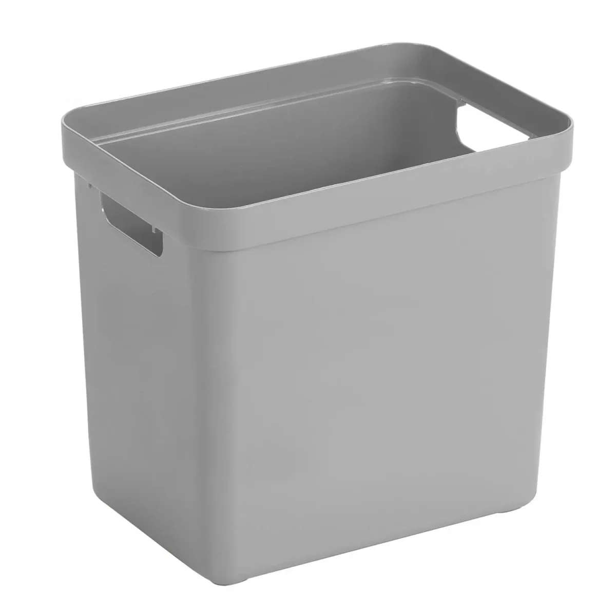 1x Lichtgrijze opbergboxen/opbergdozen/opbergmanden 25 liter kunststof. Door het moderne design en de luxe uitstraling van de boxen kun je deze opbergboxen/opbergdozen prima in de woonkamer of slaapkamer plaatsen.