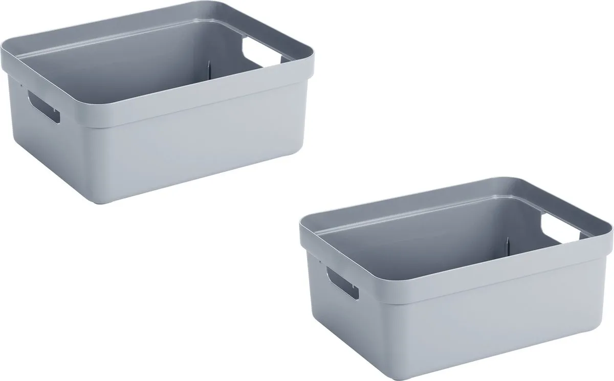2x stuks blauwgrijze opbergboxen/opbergdozen/opbergmanden 24 liter kunststof. Door het moderne design en de luxe uitstraling van de boxen kun je deze opbergboxen/opbergdozen prima in de woonkamer of slaapkamer plaatsen. Deze box is bijvoorbeeld geschikt voor het opbergen van rondslingerend speelgoed, breiwerkjes of het opbergen van boeken. Ook ideaal voor in de badkamer of in de voorraadkast. De mand heeft handgrepen waardoor je ze gemakkelijk kunt dragen. Formaat: ongeveer 45,3 x 35,4 x 18,3 cm. Materiaal: kunststof. Aantal boxen: 2x. Deksel: geen. Inhoud: ca. 24 liter. Kleur: blauw grijs. Opbergdozen/opbergboxen/manden voor het opbergen van spullen.