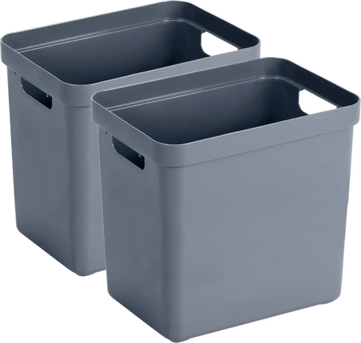 2x stuks donkerblauwe opbergboxen/opbergdozen/opbergmanden kunststof – 25 liter – opbergbakken