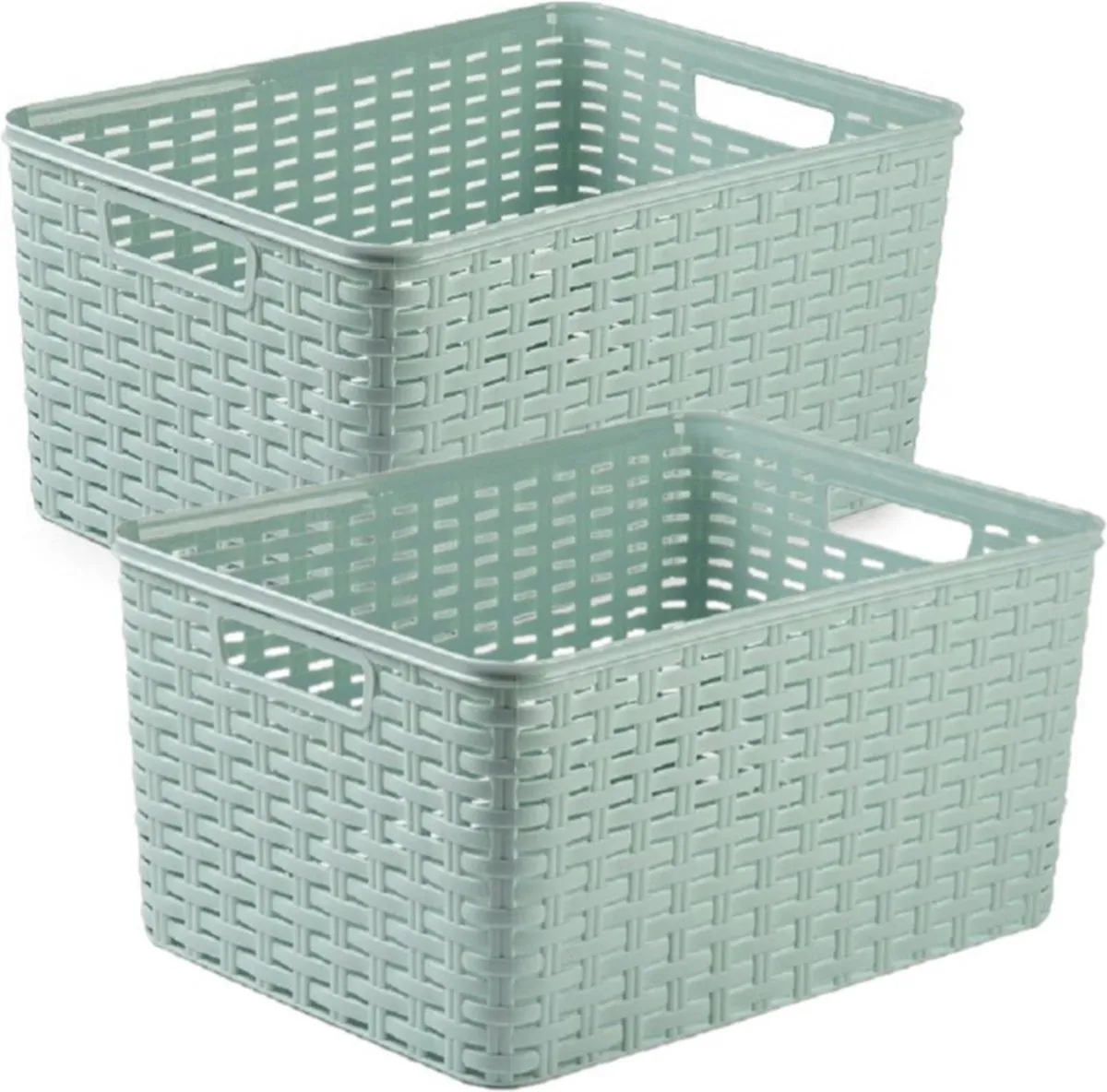 2x stuks rotan gevlochten opbergmand/opbergbox kunststof – mintgroen – 38 x 28 x 19 cm – Kast mandjes