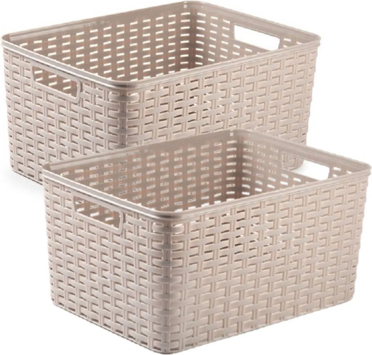 2x stuks rotan gevlochten opbergmand/opbergbox kunststof – taupe – 38 x 28 x 19 cm – Kast mandjes