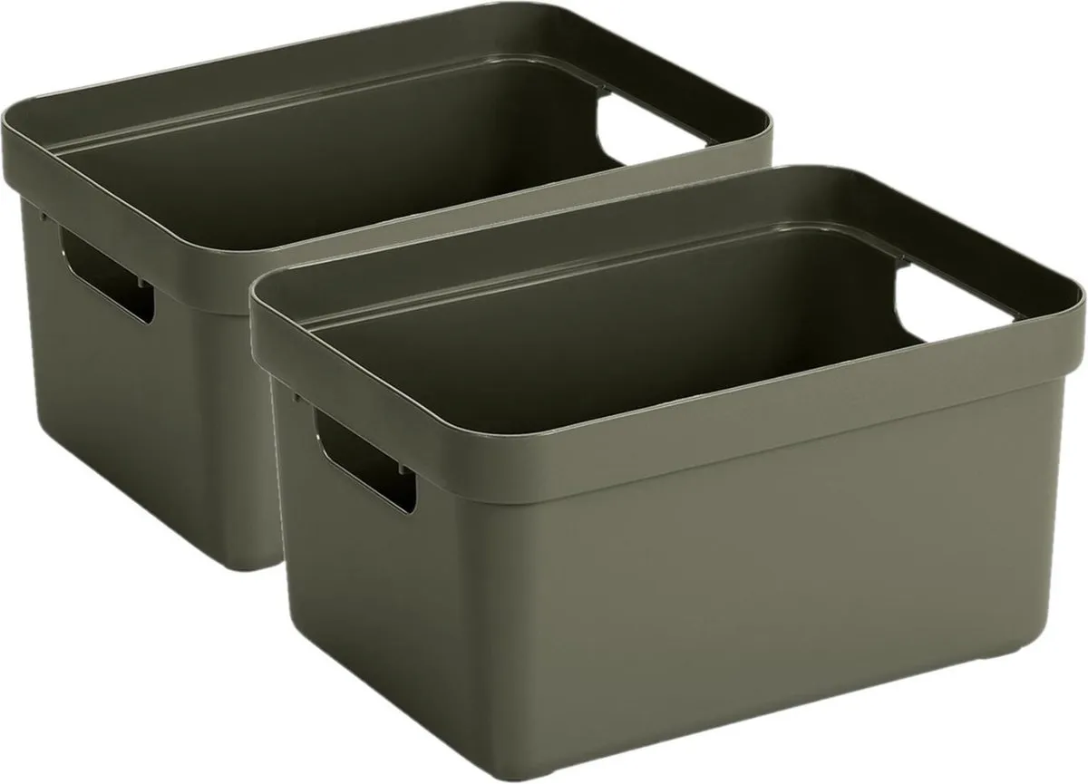 4x stuks donkergroene opbergboxen/opbergmanden 5 liter kunststof. Door het moderne design en de luxe uitstraling van de boxen kun je deze opbergboxen/opbergdozen prima in de woonkamer of slaapkamer plaatsen. Deze mand/bak is bijvoorbeeld geschikt voor het opbergen van rondslingerend speelgoed, breiwerkjes of het opbergen van boeken. Ook ideaal voor in de badkamer of in de voorraadkast. De mand heeft handgrepen waardoor je ze gemakkelijk kunt dragen. Formaat: ongeveer 25,2 x 18 x 12,2 cm. Materiaal: kunststof. Deksel: geen. Inhoud: ca. 5 liter. Opbergdozen/opbergboxen/manden voor het opbergen van spullen.