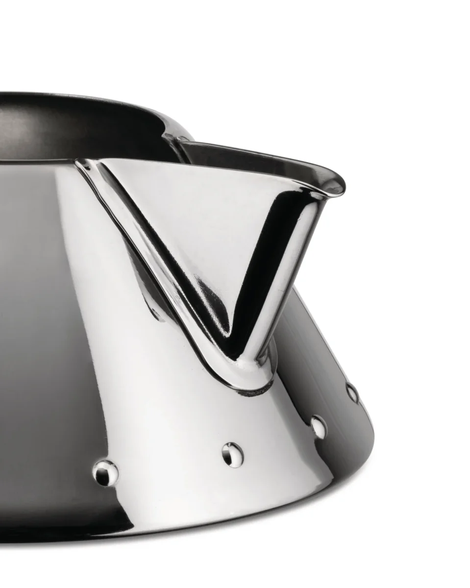 This creamer is one of the first projects in the large and successful collection of items designed for Alessi by American designer and architect Michael Graves. Graves’s very personal visual code is evident here in a series of influences that range from Art Deco and Pop Art through to the language of cartoons. Thanks to this incredible design approach, the items in this collection became internationally recognised icons of 1980s and 1990s design.