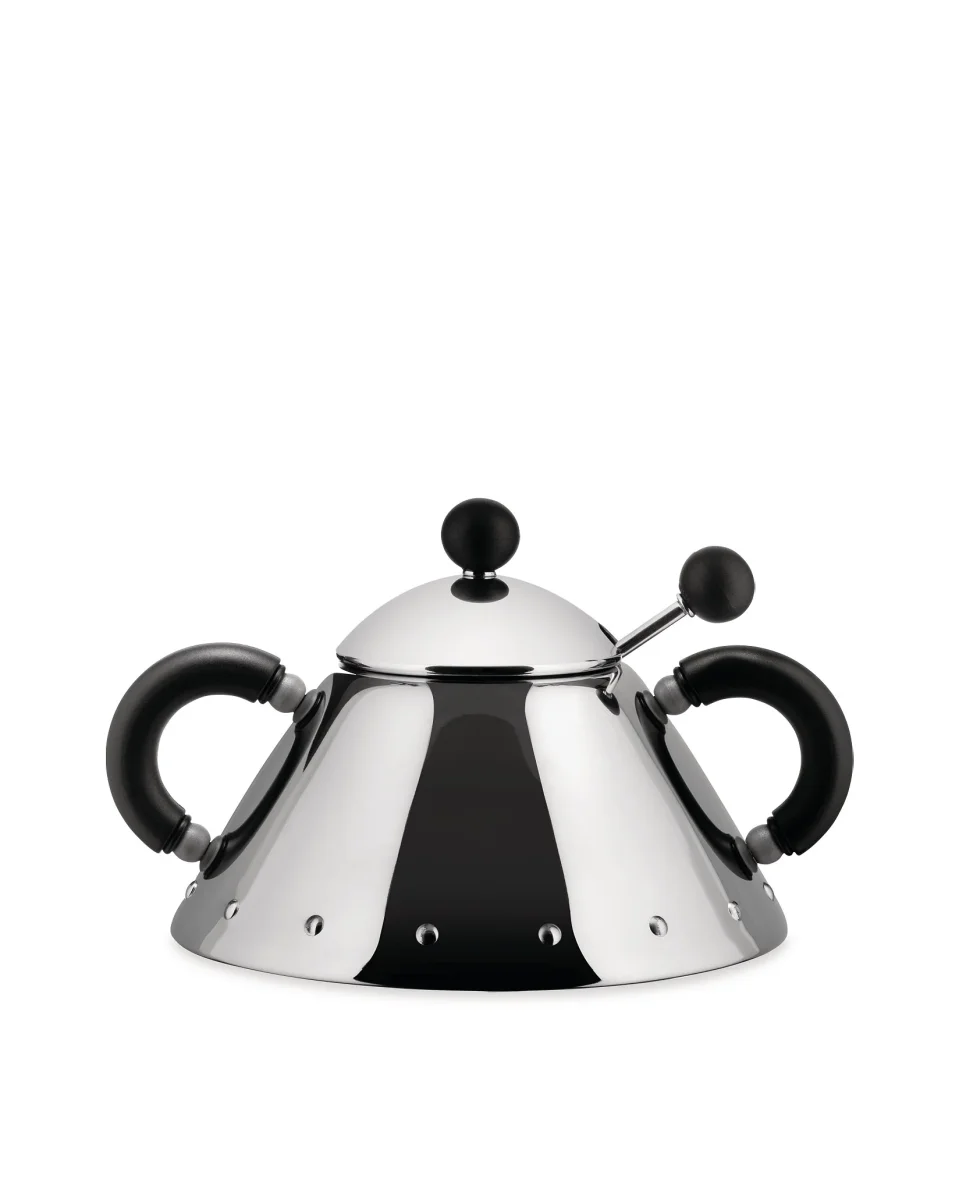 This sugar bowl is one of the first projects in the large and successful collection of items designed for Alessi by American designer and architect Michael Graves. Graves’s very personal visual code is evident here in a series of influences that range from Art Deco and Pop Art through to the language of cartoons. Thanks to this incredible design approach, the items in this collection became internationally recognised icons of 1980s and 1990s design.