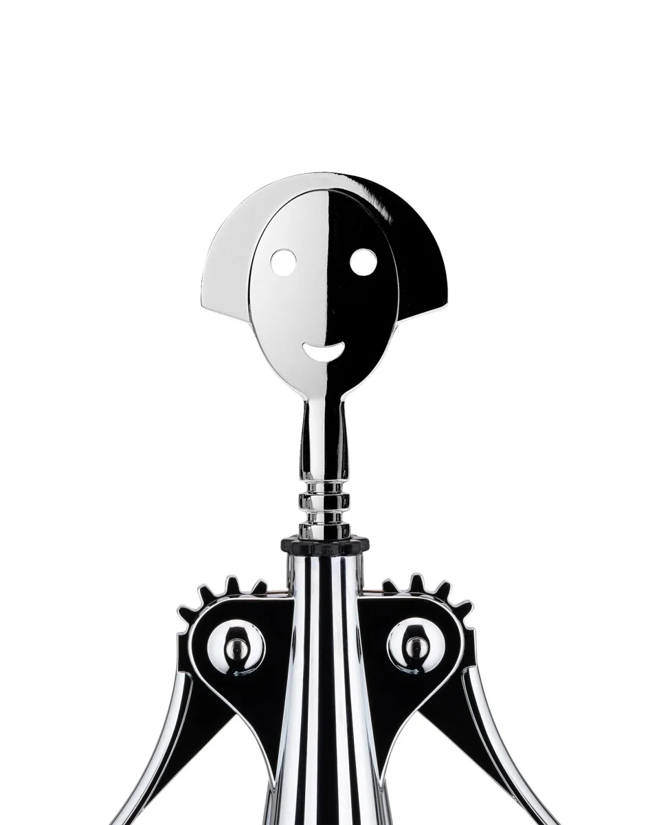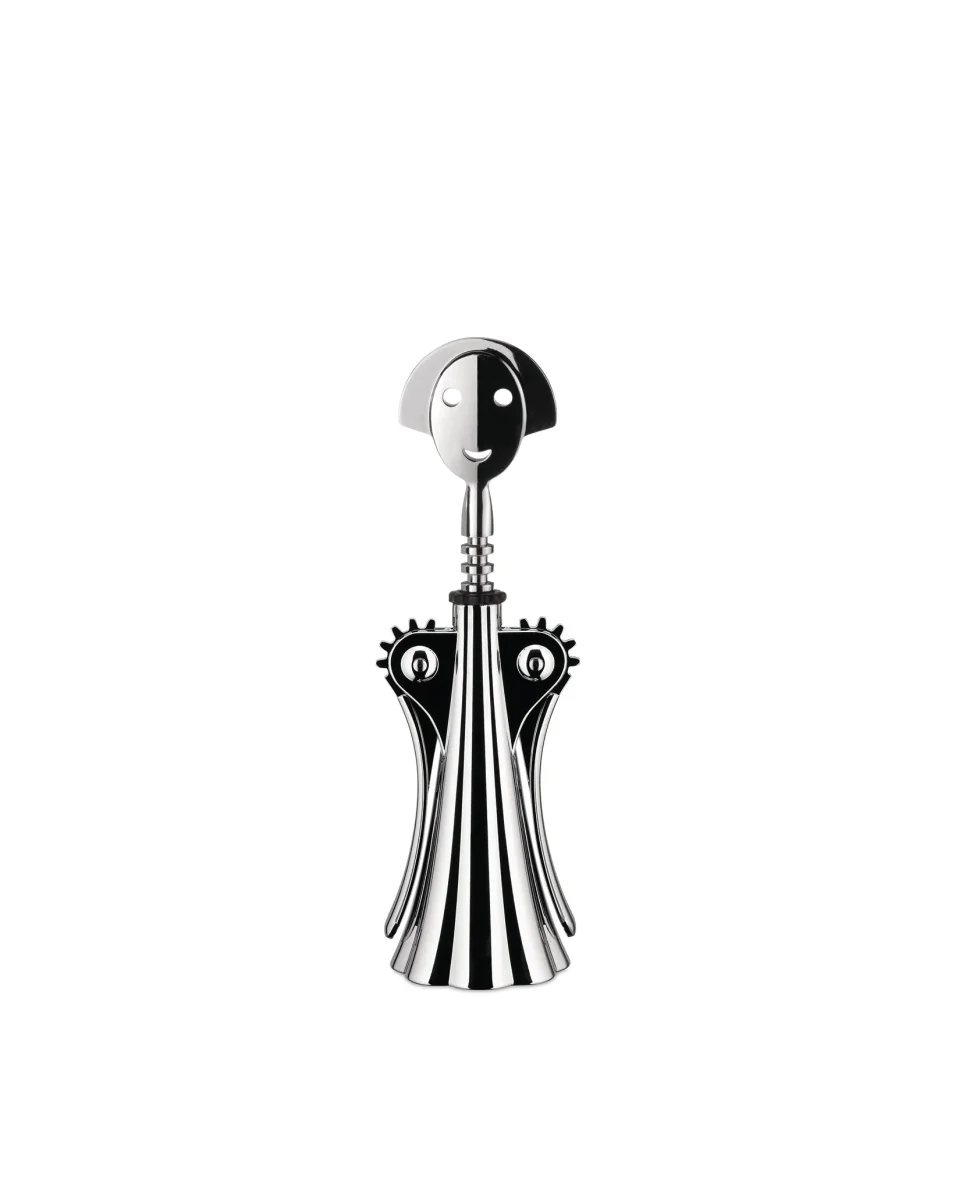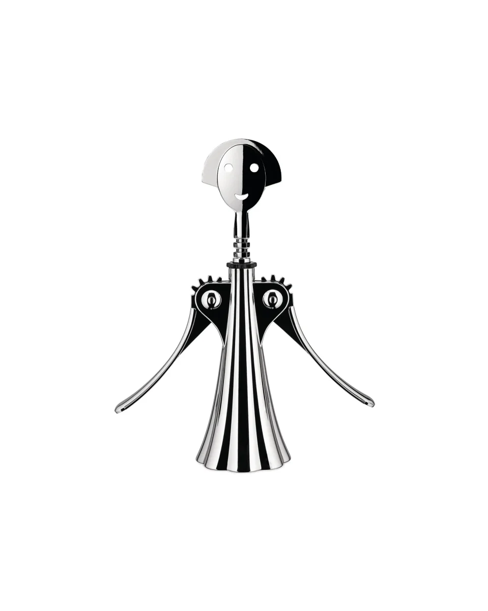 The Anna G. designer corkscrew by Alessandro Mendini is an ironic tribute to a real woman whose smiling face has become a cult item over the years, resulting in a large collection of tableware and kitchen objects. The Anna G. is the perfect designer corkscrew to gift to wine lovers or to bring laughter and joy at a dinner with close friends, while being an interesting and captivating item. Since 1994, it is one of the most recognised products within the Alessi Encyclopaedia.