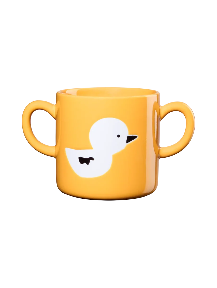 Vrolijke kinderbeker met schattig eendje in zonnig geel.
