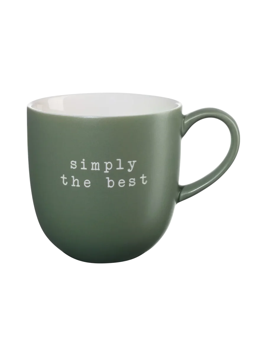 De mok is bedrukt met de tekst “Simply the Best”, een perfecte manier om jezelf of iemand anders een compliment te geven tijdens koffie, thee of warme chocolademelk. Dankzij de duurzame porselein en de levendige groene kleur is deze mok ideaal voor dagelijks gebruik én een geweldig cadeau voor vrienden, familie of collega’s.