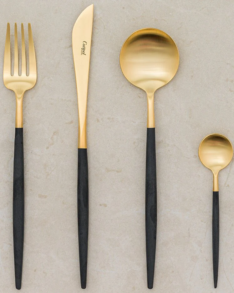 Cutipol Goa Black Gold is de meest elegante versie van Goa. Mooie combinatie van kleuren in goudstaal en zwart handvat. Ideaal voor de leukste feesten en unieke momenten aan tafel.