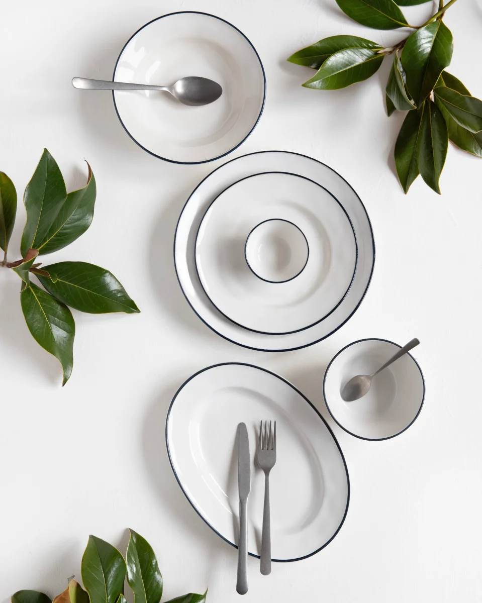 Geïnspireerd door klassieke serviescollecties, vindt de Blue Edge-collectie zijn vormen opnieuw uit om een elegante en eigentijdse collectie te worden.