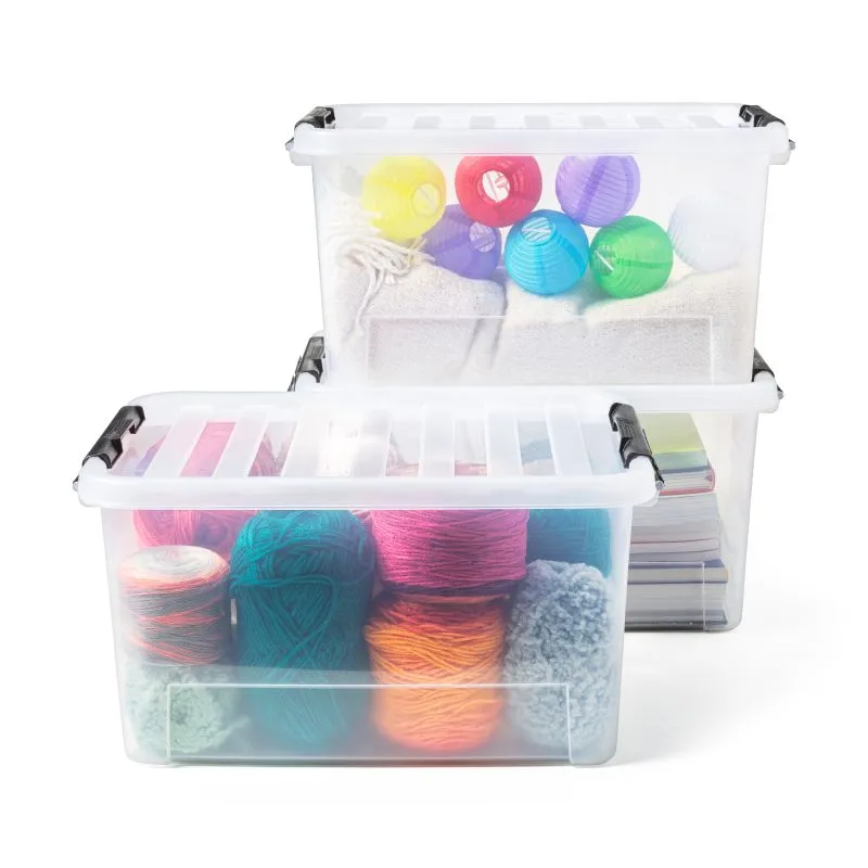 Deze set opbergboxen bestaat uit drie boxen van 25 liter. Doordat de boxen volledig transparant zijn is het eenvoudig om te bepalen wat de inhoud van de boxen is. Met een inhoud van 25 liter is er voldoende ruimte om spullen op te bergen. Zaken als speelgoed, kleding, knutselspullen en meer zijn geschikt om in deze boxen te bewaren. Door middel van de clips kan de deksel eenvoudig worden vastgeklikt op de opbergbox. De deksel is zodanig gemaakt dat de boxen eenvoudig op elkaar gestapeld kunnen worden en vervolgens ook stevig staan. * Opbergbox afsluitbaar met deksel en clipsysteem * Set van drie boxen * Inhoud: 3 x 25 liter * Transparant * Stapelbaar * Lengte: 44 cm * Breedte: 31 cm * Hoogte: 23 cm