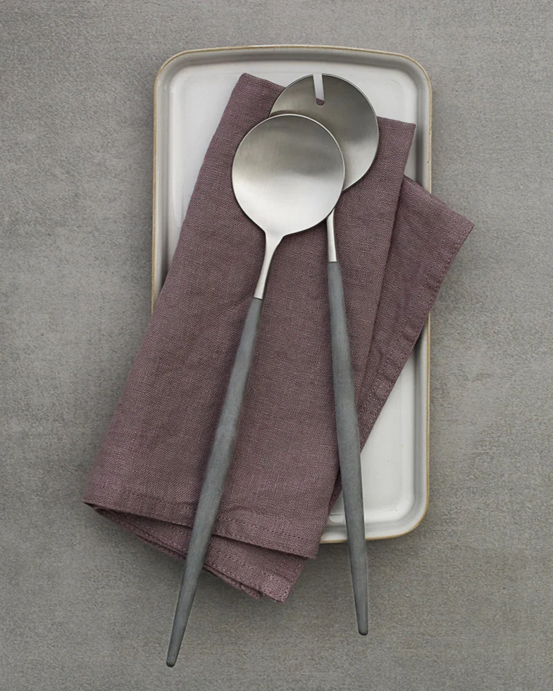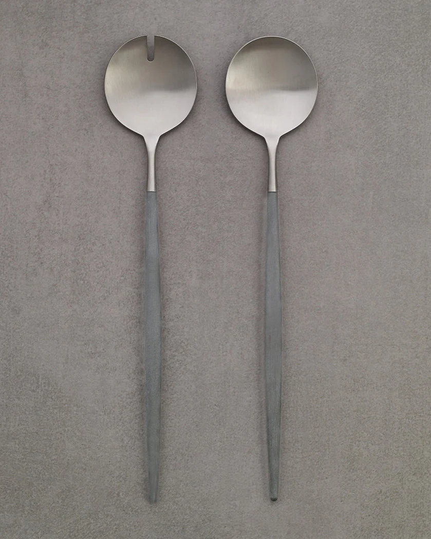 Set van 2 stuks hoogwaardige roestvrijstalen servers (18/10) met een matte afwerking, gecombineerd met een grijs harshandvat.