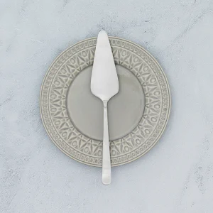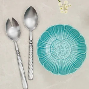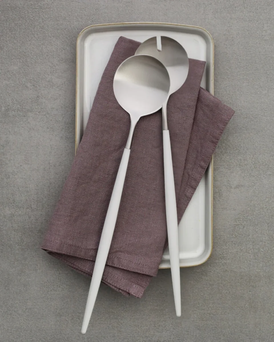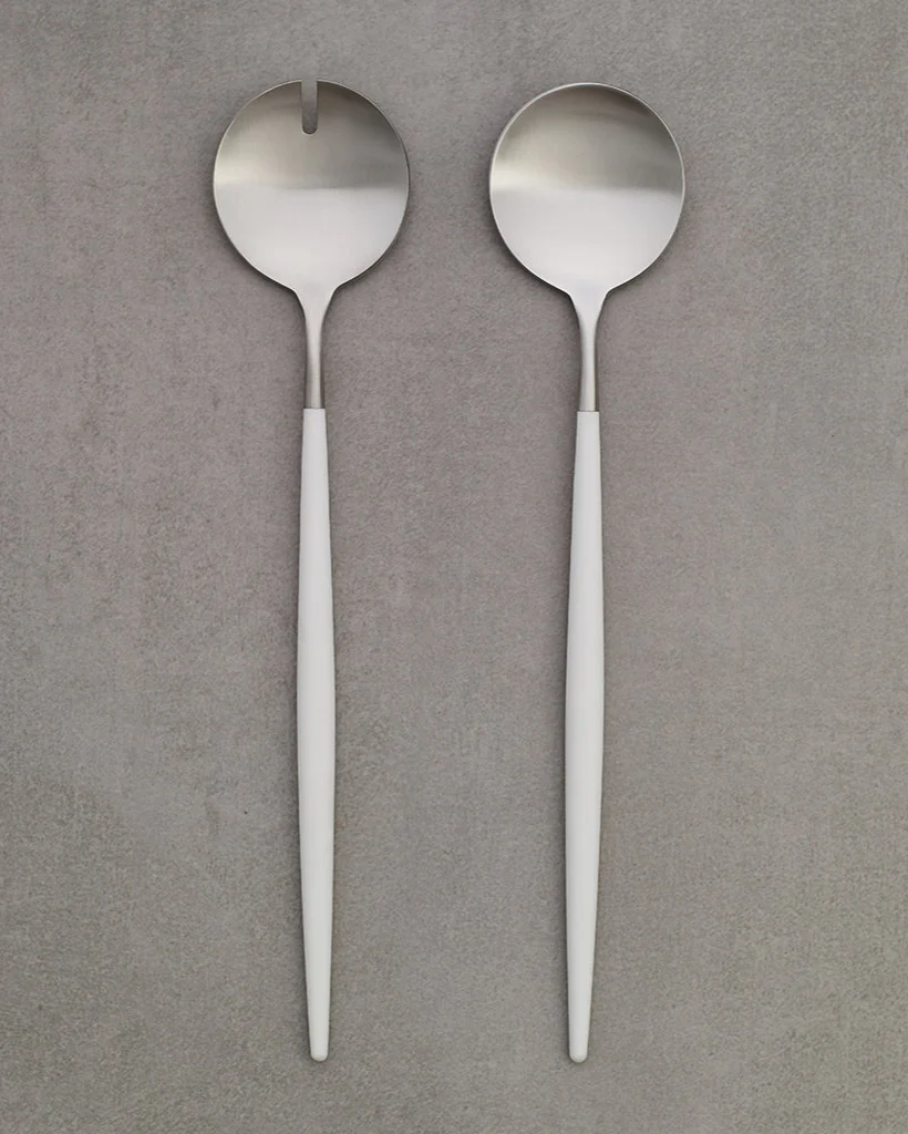Set van 2 stuks hoogwaardige roestvrijstalen servers (18/10) met een matte afwerking, gecombineerd met een handvat van witte hars.