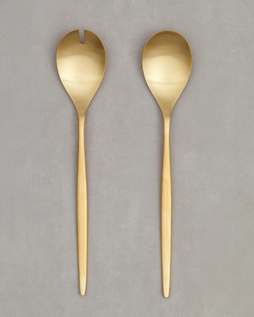 Set van 2 stuks hoogwaardige roestvrijstalen servers (18/10) met een mat gouden afwerking.