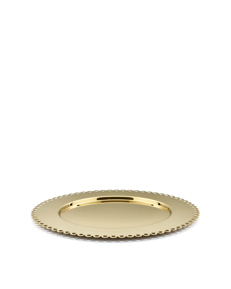 Tray/placemat with perforated edge. 18/10 stainless steel.