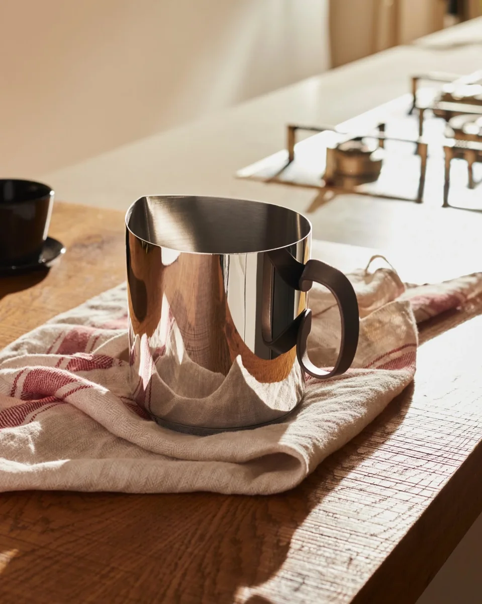 Milk boiler in 18/10 stainless steel. Handle in 18/10 stainless steel with PVD coating, brown. Magnetic steel bottom suitable for induction cooking.
