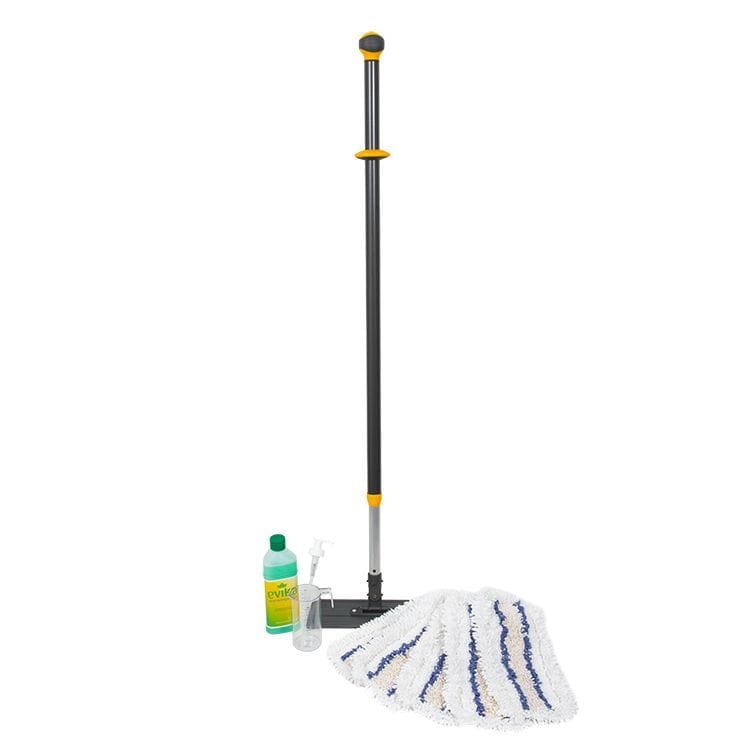 De steel is telescopisch verstelbaar en is voorzien van een ergonomische bol. Deze bol zorgt ervoor dat de pols tijdens het moppen minder belast wordt. Dit is voor mensen die dagelijks vloeren schoonmaken natuurlijk bijzonder belangrijk. Voor mensen die alleen willen werken met het beste materiaal is de ergonomische bol gewoon een prettige grip die het schoonmaken van de vloer vereenvoudigt.
