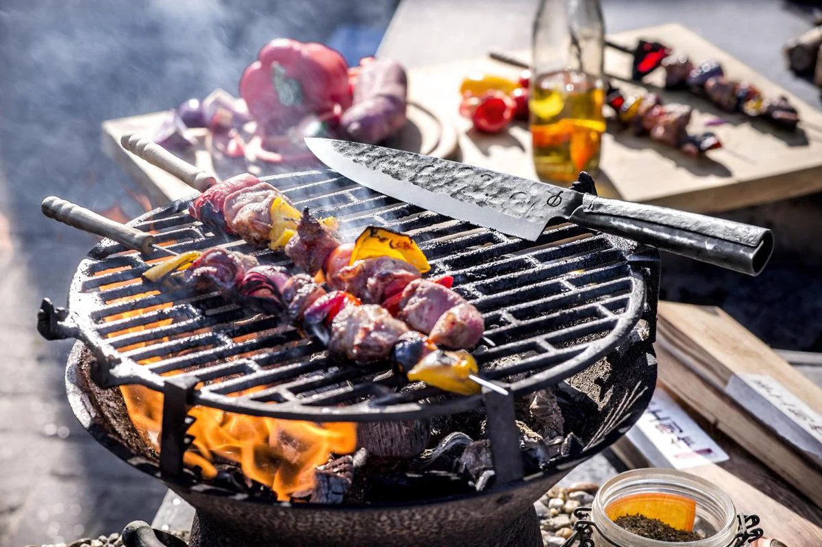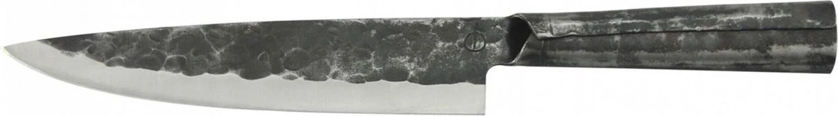 Brute Forged koksmes is handgeslagen en vervaardigd uit 1 stuk gehard staal (58 HRC Rockwell) met een lemmet (snijoppervlakte) van 20,5 cm en een dikte van 2 mm.