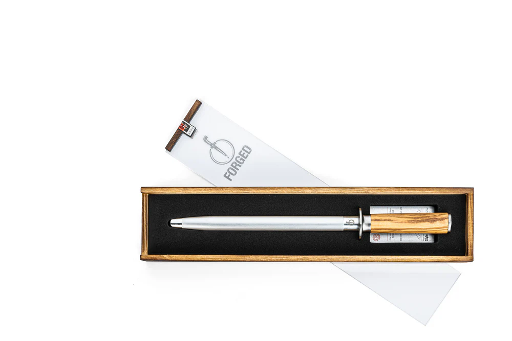 Brute Olive Aanzetstaal met een lengte van 26cm. Het handvat is gemaakt van olijfhout. De messen kunnen worden onderhouden met deze mooie aanzetstaal. Deze is hiervoor speciaal gemaakt en biedt je een kwalitatief goed aanzetstaal dat ovaal is uitgevoerd en is voorzien van een diamantlaag.