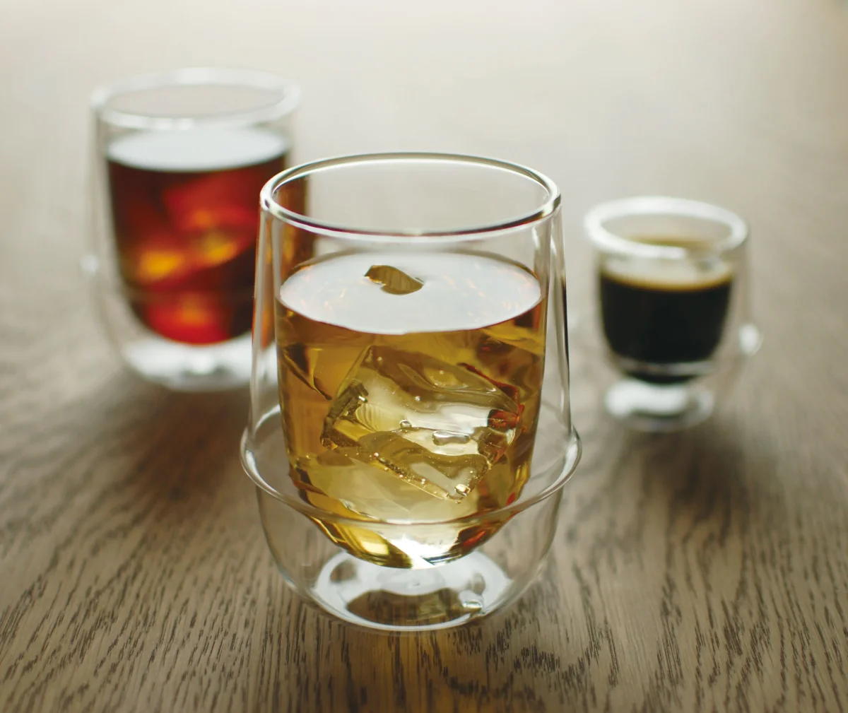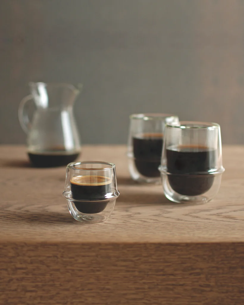 KRONOS Kinto Japan laat drankjes lijken te zweven in de lucht met een dubbelwandige structuur. De ring houdt je vingers vast voor gemakkelijke grip en de beker is schuin geplaatst, ideaal om uit te drinken. Dankzij de thermisch geïsoleerde constructie behouden de mokken de temperatuur van warme en koude dranken langdurig. De items kunnen ook perfect zijn voor het serveren van desserts of hapjes.
