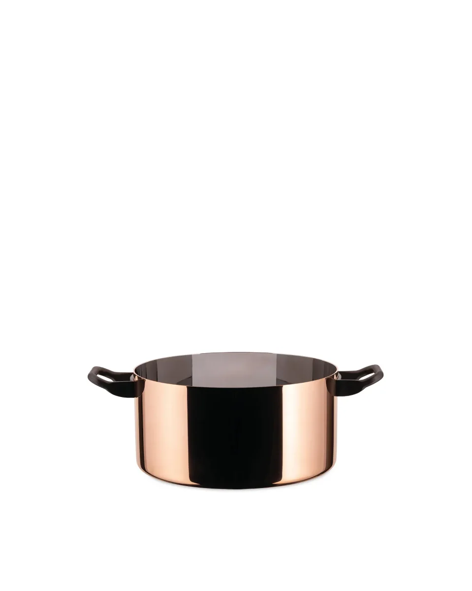 The two-handle casserole of La Cintura di Orione series, developed with the advice of starred chef Gualtiero Marchesi, allows you to enjoy a professional performance that derives from the combination into one instrument of copper’s perfect conduction of heat and steel’s resistance. It is suitable for braising, stewing, roasting and preparing delicious risotto.