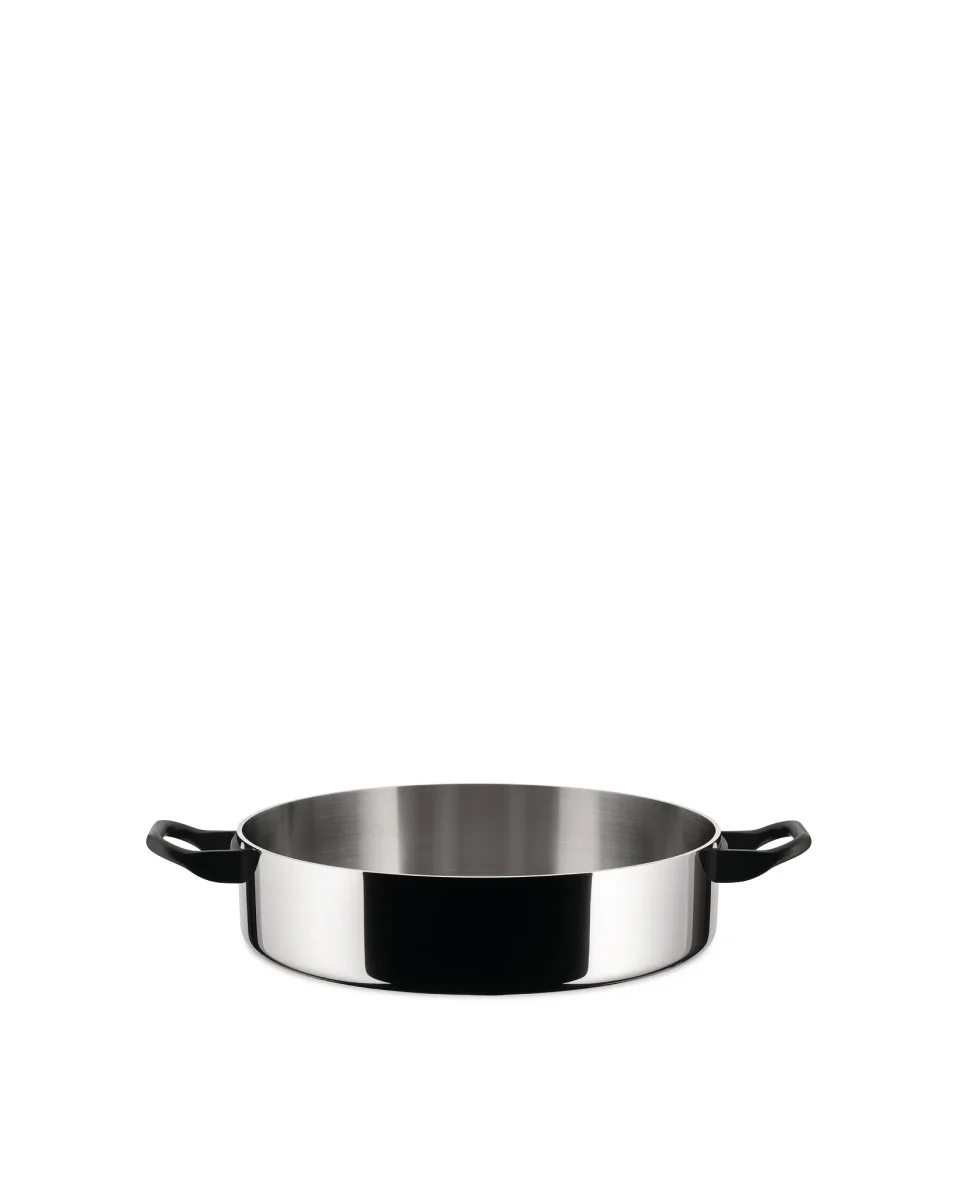 Low casserole with two handles in multiply (AISI 430, aluminium, 18/10 stainless steel). Magnetic steel bottom suitable for induction cooking.