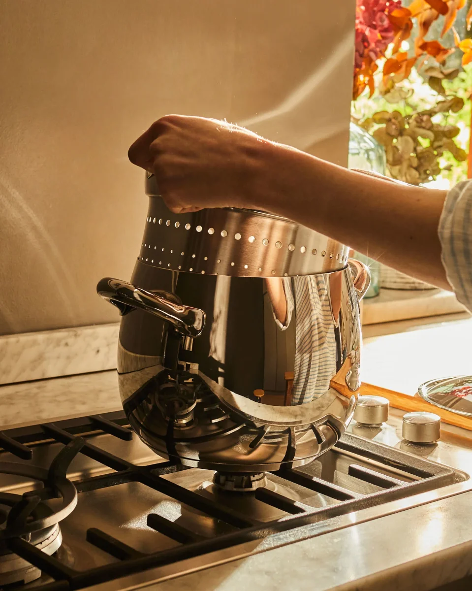 Pierced basket for Pasta-set in 18/10 stainless steel.