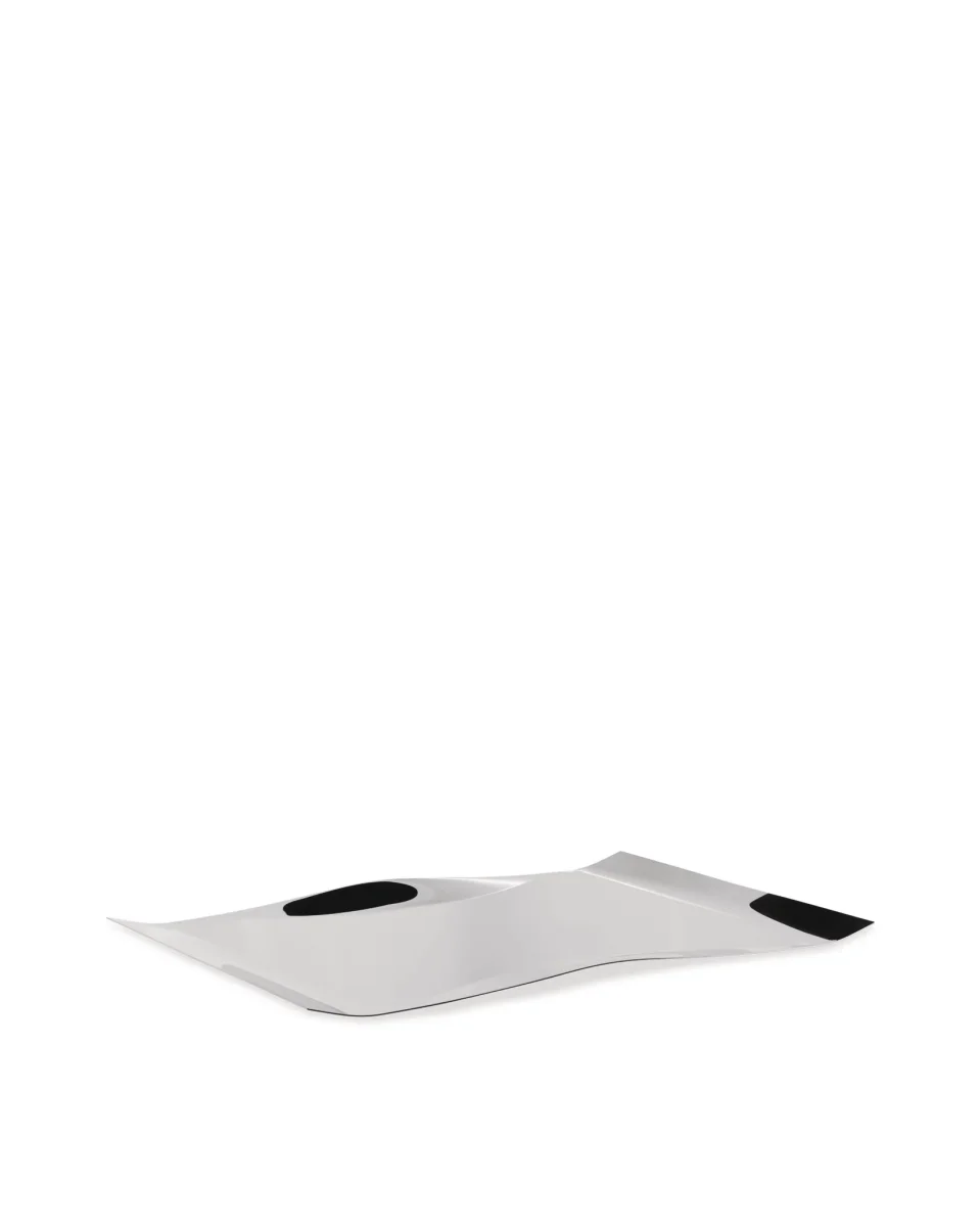 Rectangular tray in 18/10 stainless steel.