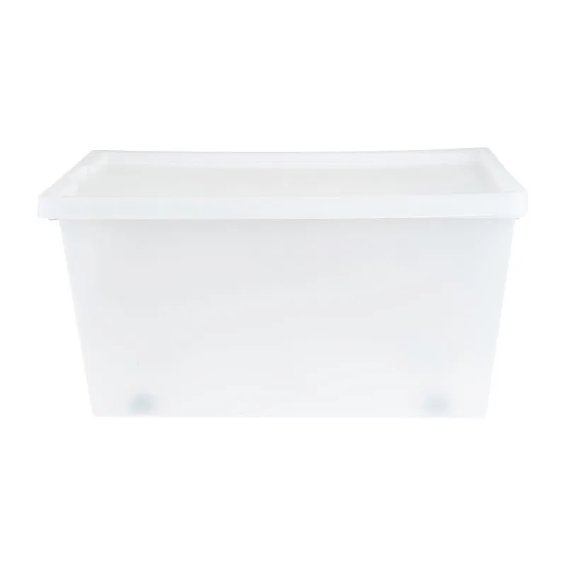 Handige transparante opbergbox op wieltjes met een inhoud van 70 liter. In deze opbergbox kun je heel wat spullen kwijt en door de wieltjes kun je deze ook nog eens erg makkelijk verplaatsen. * Gemaakt van kunststof * Inhoud van 70 liter * Opbergox op wieltjes * Voorzien van een deksel