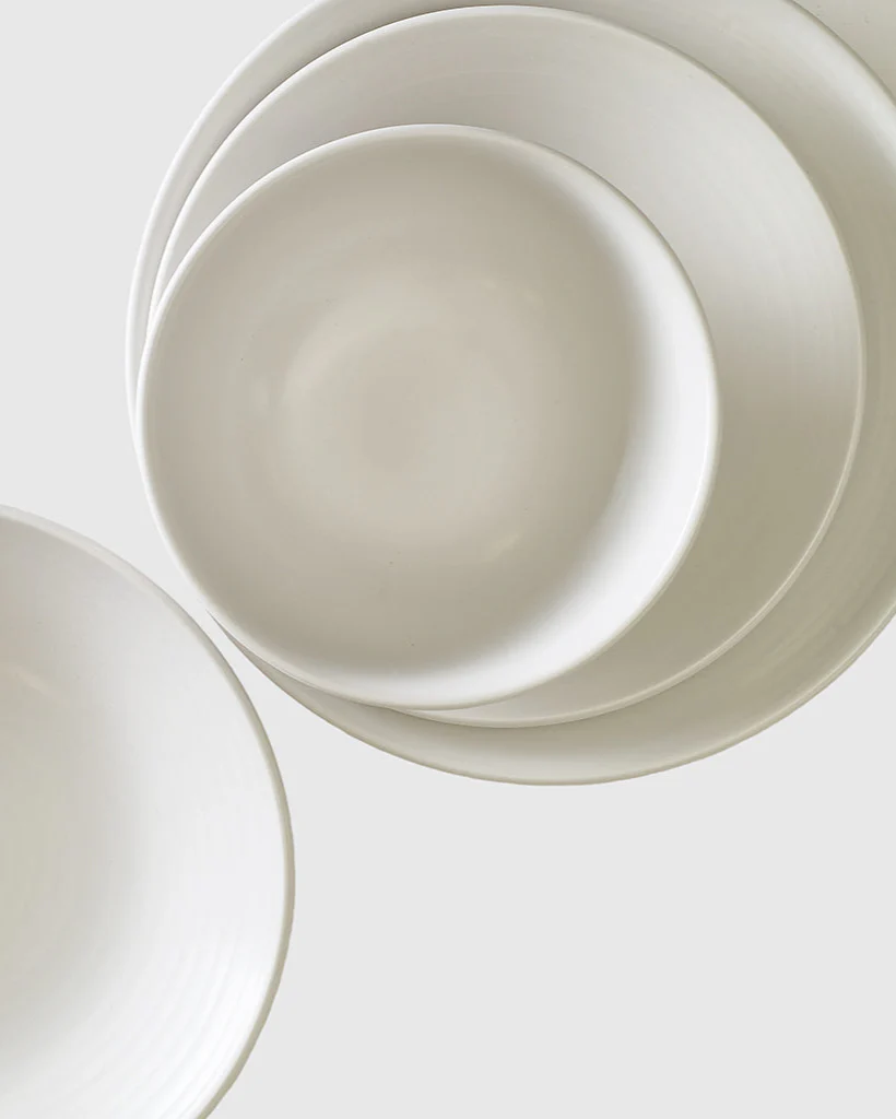 Wit raakt nooit uit de mode en past ook perfect bij elk kleurig accessoire. De ronde texturen en matte afwerking maken dit voorstel tot een originele basiscollectie.