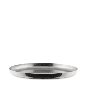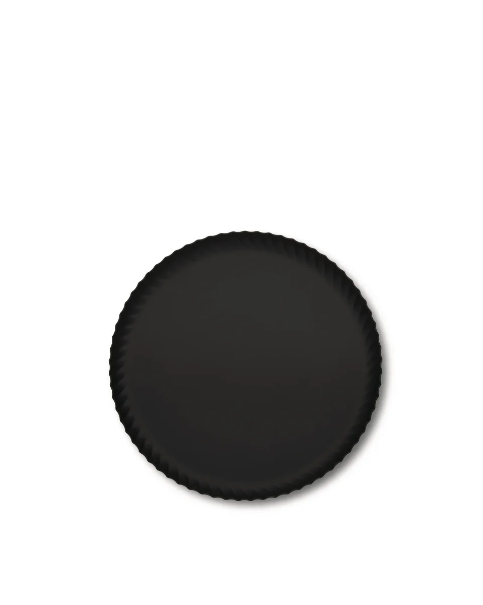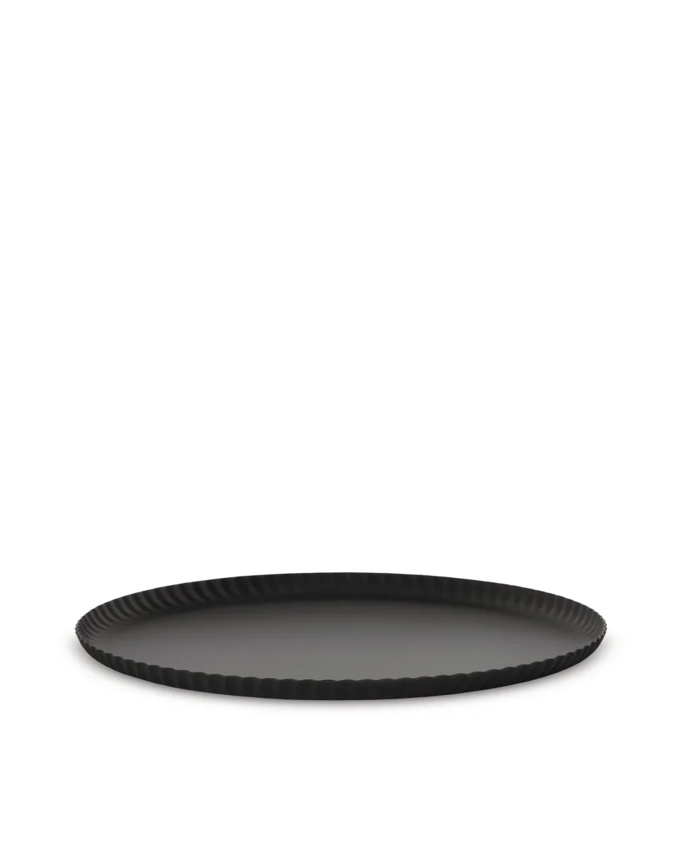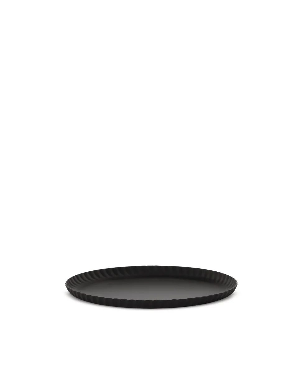 Round tray in coloured steel, black.