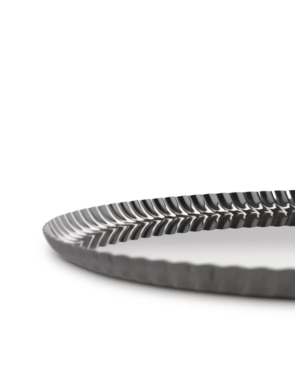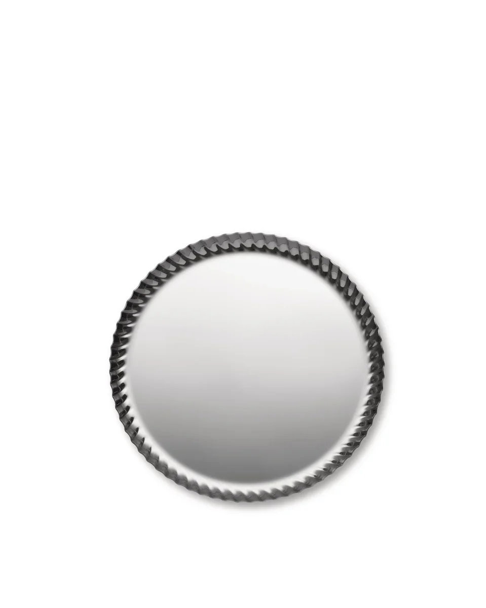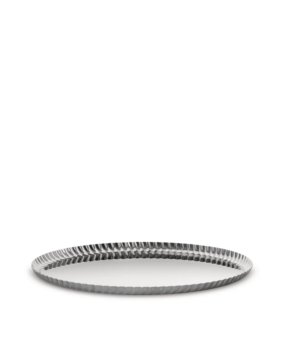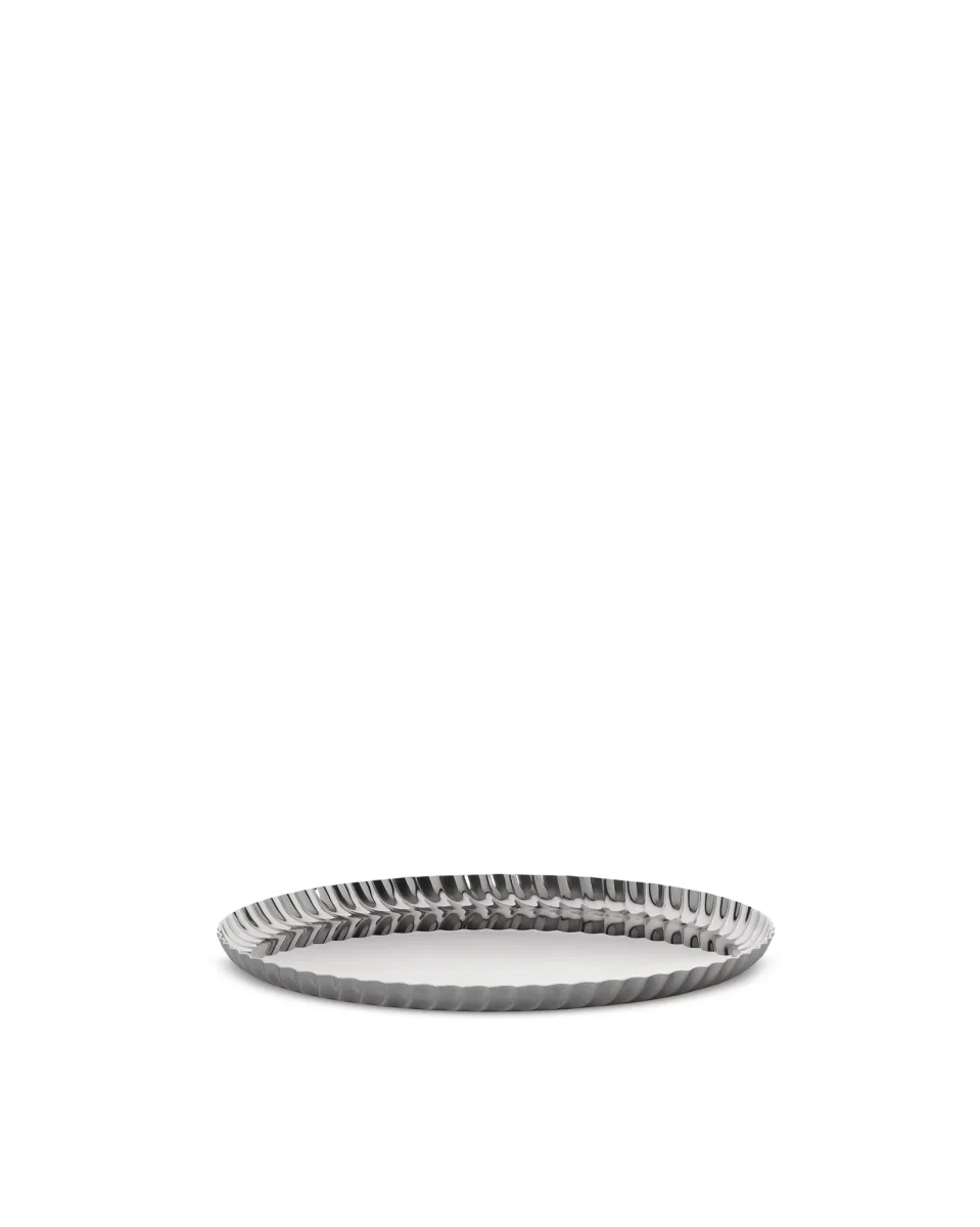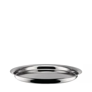 Round tray in 18/10 stainless steel.
