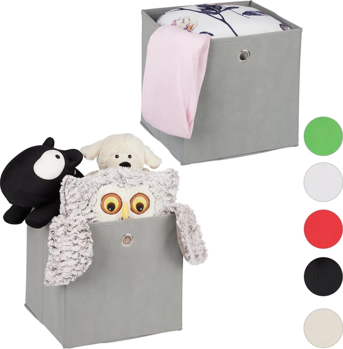 relaxdays opbergbox – set van 2 – stof – opvouwbaar – speelgoed – opbergmand – opbergen grijs