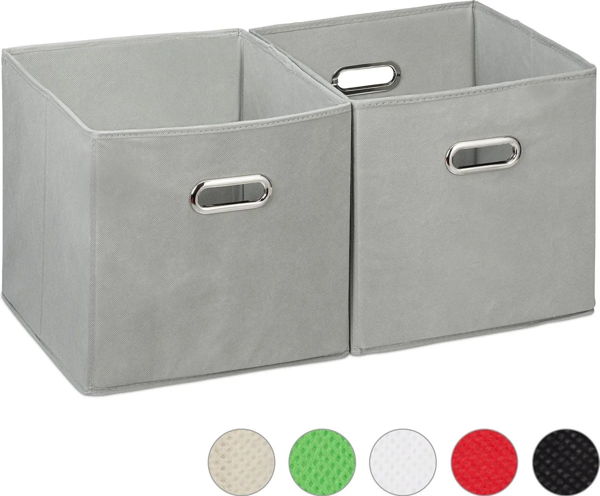 Relaxdays opbergbox stof – set van 2 – opvouwbaar – opbergmand – 30 cm – kast organizer – grijs