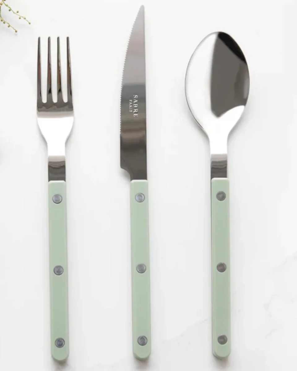 Sabre Paris Bistrot Green Asparagus bestek met groen handvat en 18/10 staal in glanzende afwerking.