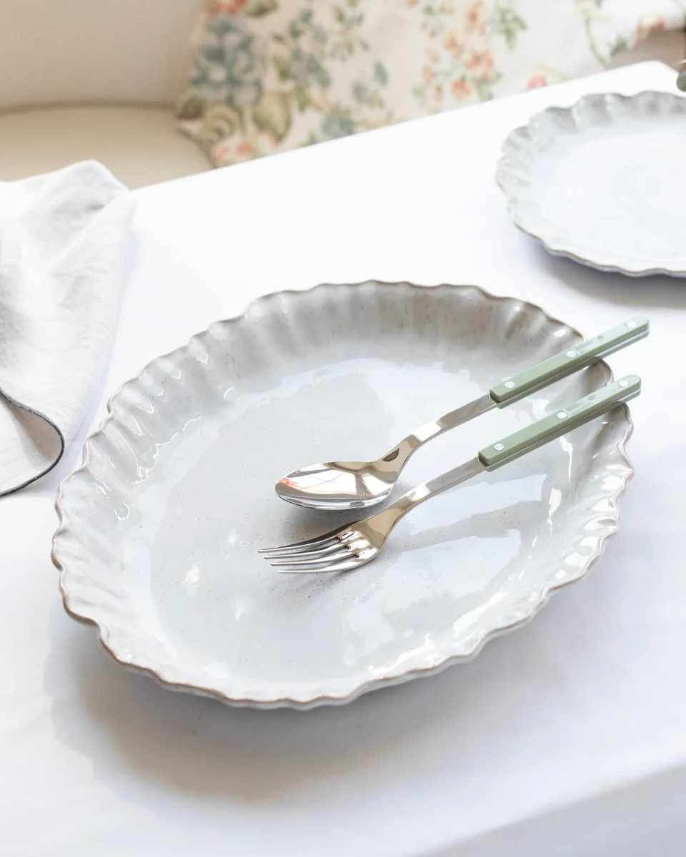 Set bestaat uit een grote serveervork en een grote opscheplepel.