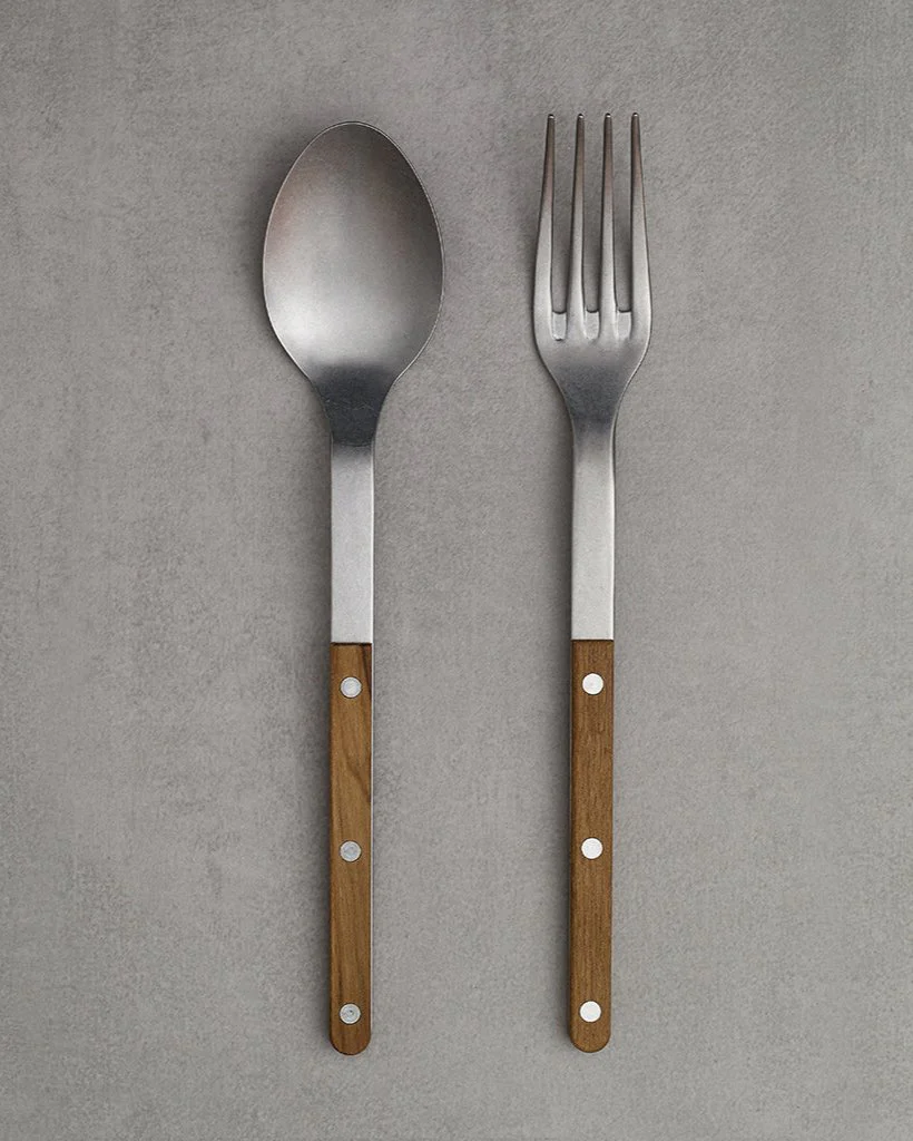 Bistro is onze meest rustieke collectie. De stalen afwerking is vintage en samen met het hout van het handvat is het een perfecte collectie voor buiten, barbecues en buitenfeesten. Combineer de couverts met de rest van het bestek uit de collectie of probeer ze met je beste borden in het midden om je tafel een rustiek tintje te geven.