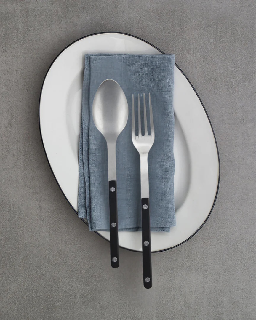 Set van 2 stuks Sabre Paris Bistrot Ivory servers met zwart handvat en 18/10 staal in vintage afwerking.