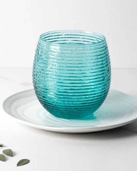 Reeded Clear in turquoise glas is een elegante en zeer veelzijdige collectie tegelijk. Met zijn getextureerde glasontwerp is hij in staat om de meest elegante tafels aan te kleden of ons te vergezellen in ons meest dagelijkse leven. Je kunt hem ook combineren met de glazen uit dezelfde collectie in transparante kleur.