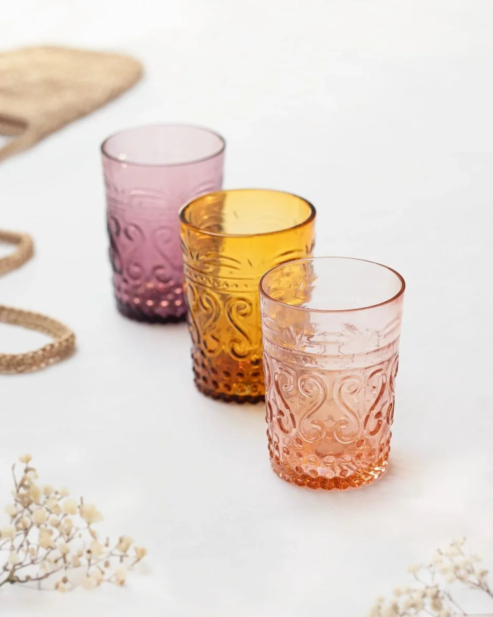 Met reliëfs geïnspireerd op de romantische en Provençaalse stijl presenteren wij de Romantische collectie Italiaanse brillen. Ideaal voor elk moment aan tafel. De glazen zijn gemaakt van gekleurd glas (niet geverfd), waardoor de kleur na het wassen altijd onveranderd blijft.